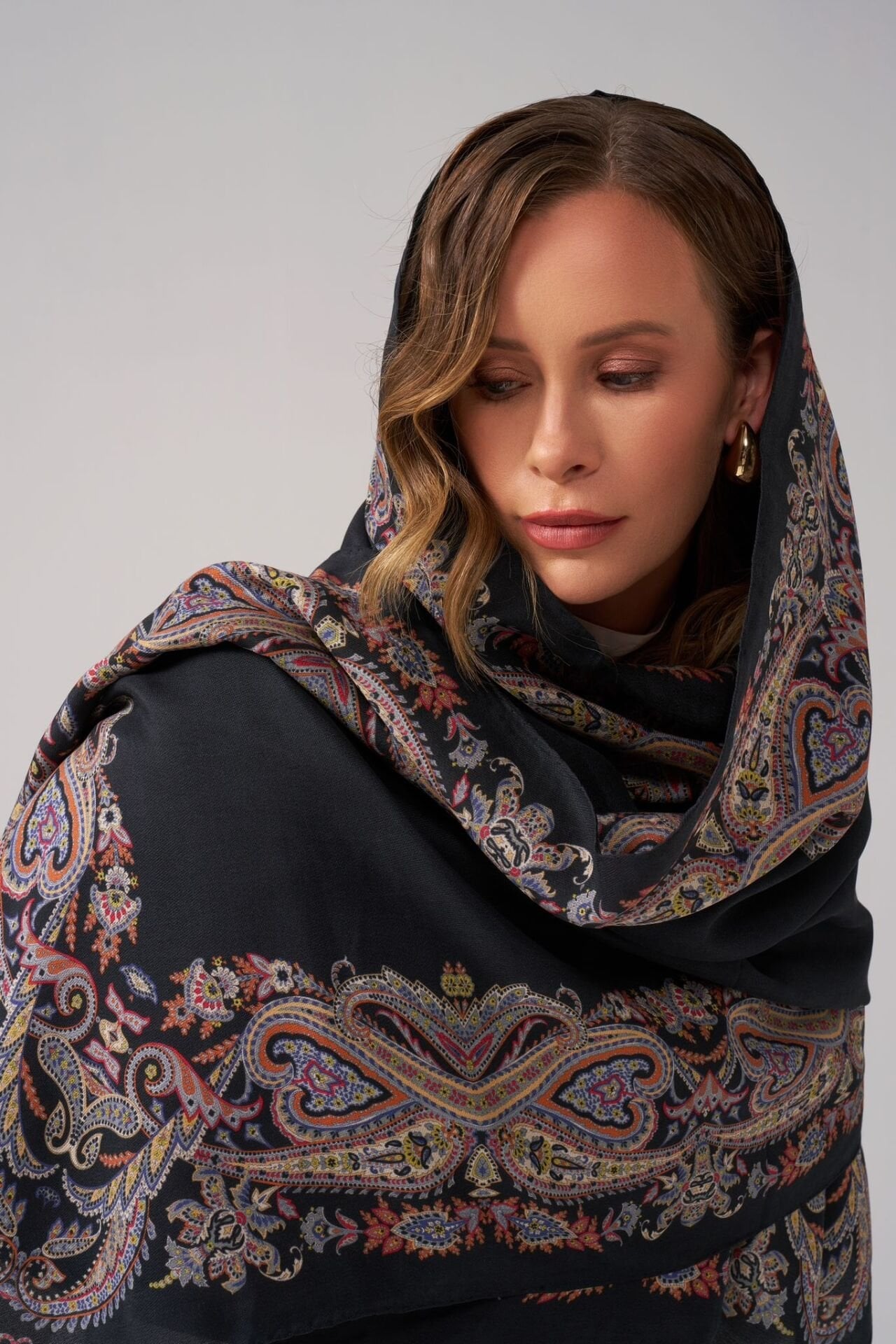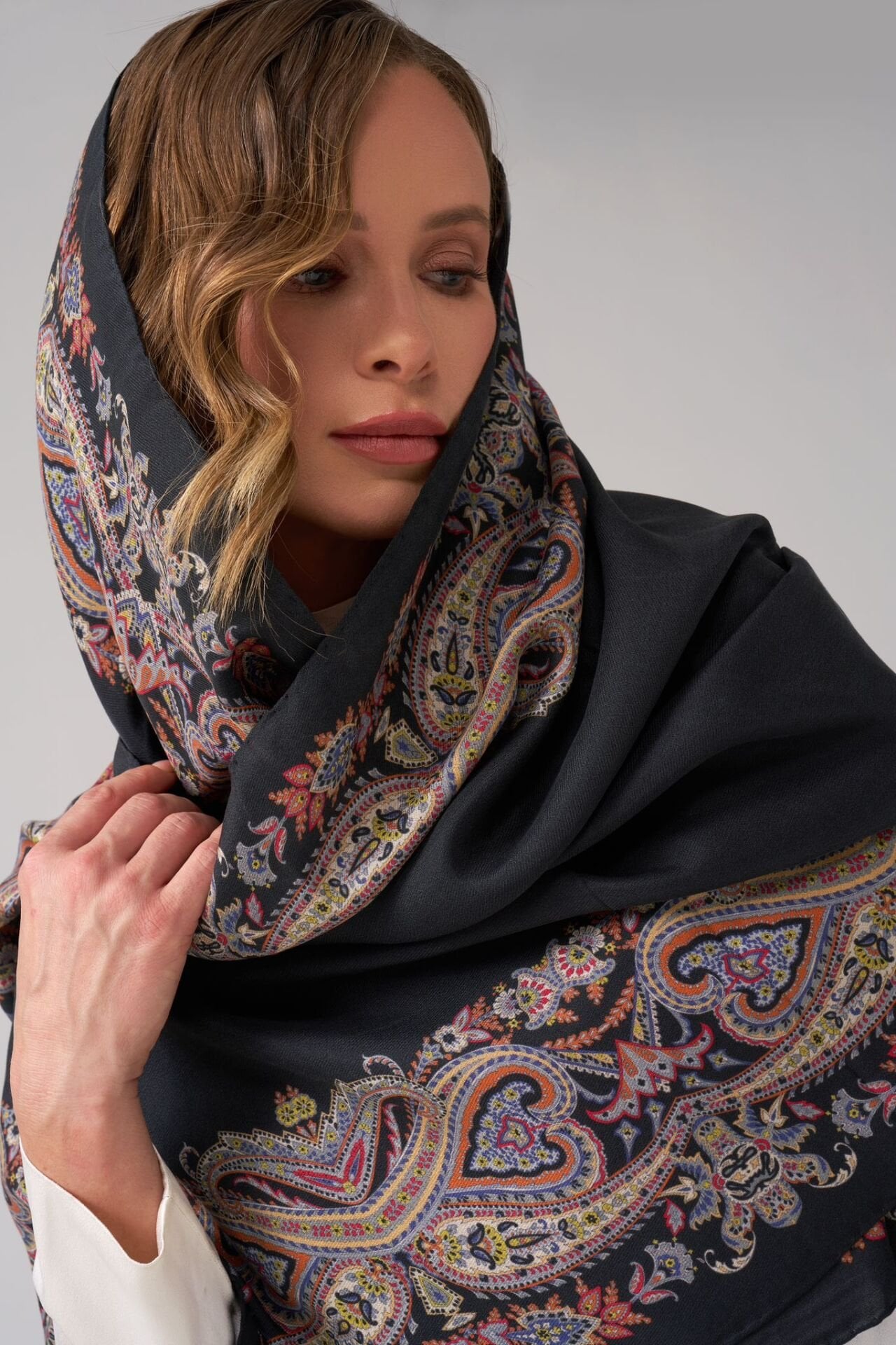 %75 ipek ve %25 pamuk karışımı bu özel şal, ipeğin zarif dokusunu pamuğun doğal yumuşaklığıyla buluşturur.
